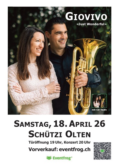 Just Wonderful – das neue Programm und Album von GIOVIVO ist da! Mit dem Premierenkonzert in der Schützi Olten zünden Muriel Zeiter und Fabian Bloch den Startschuss zu ihrer zweijährigen Tournee. Danach geht’s mit vielen Auftritten in der Schweiz, Frankreich, Griechenland, Deutschland – und sogar in China – weiter.