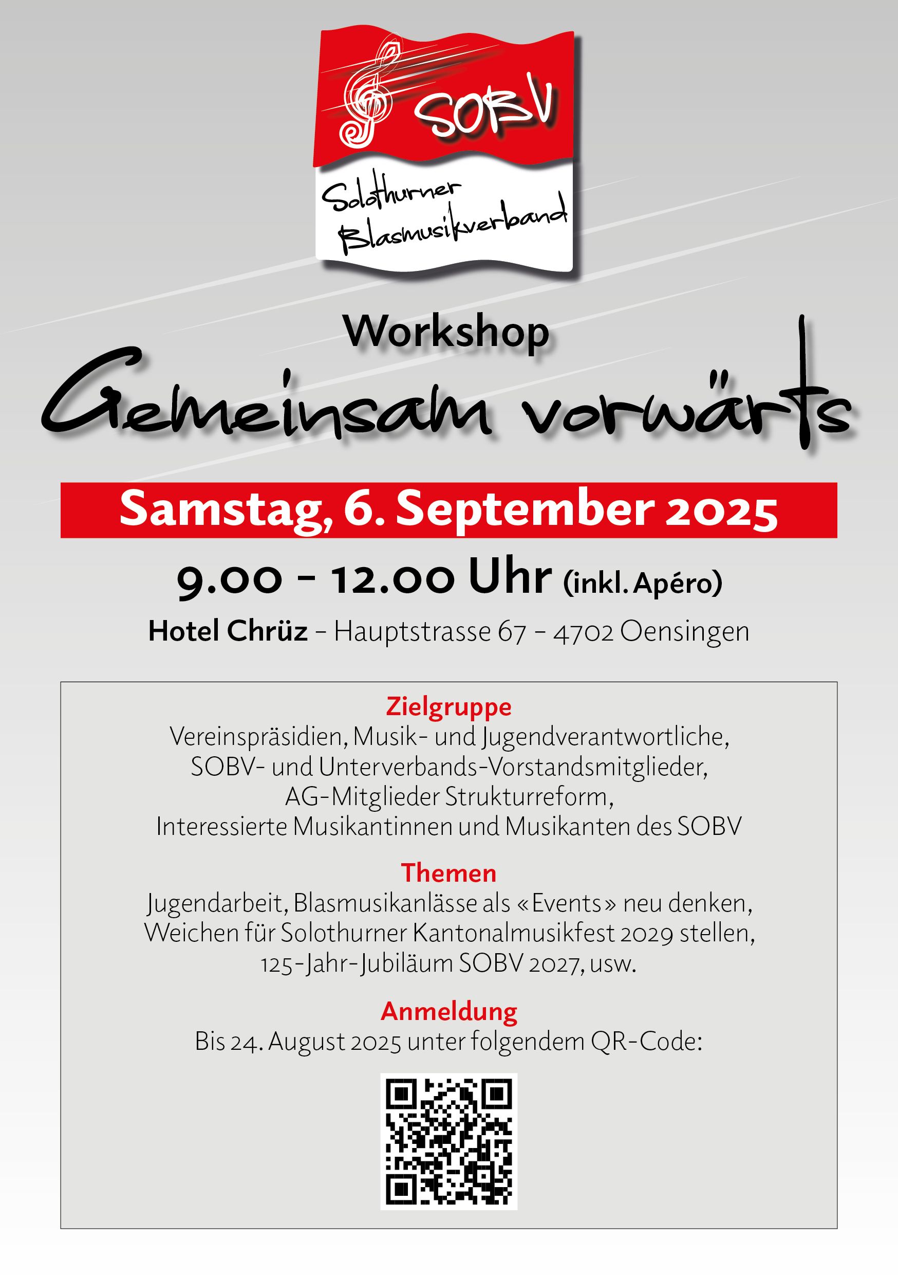 Vereinspräsidien, Musik- und Jugendverantwortliche, SOBV- und Unterverbands-Vorstandsmitglieder, AG-Mitglieder Strukturreform, interessierte Musikantinnen und Musikanten des SOBV